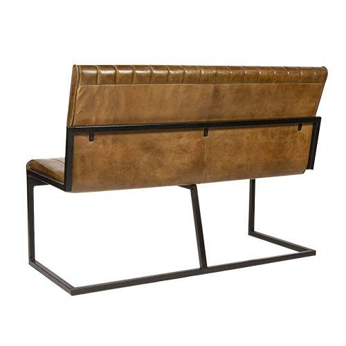 Gastrobank 123cm 2-Sitzer Cognac Braun Old English echtes Leder Sitzbank