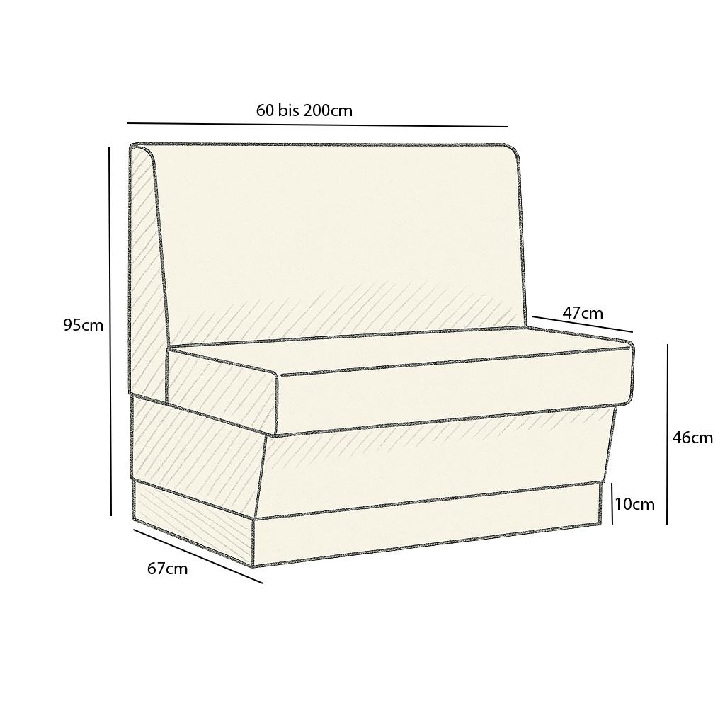 Mit einer Breite Ihrer Wahl, einer Sitzhöhe von etwa 46 cm und einer Gesamthöhe von ca. 95 cm eignet sich diese Bank perfekt für flexible Raumkonzepte. Die großzügige Sitztiefe von ca. 48 cm sorgt für angenehmen Sitzkomfort – selbst bei längerem Verweilen.