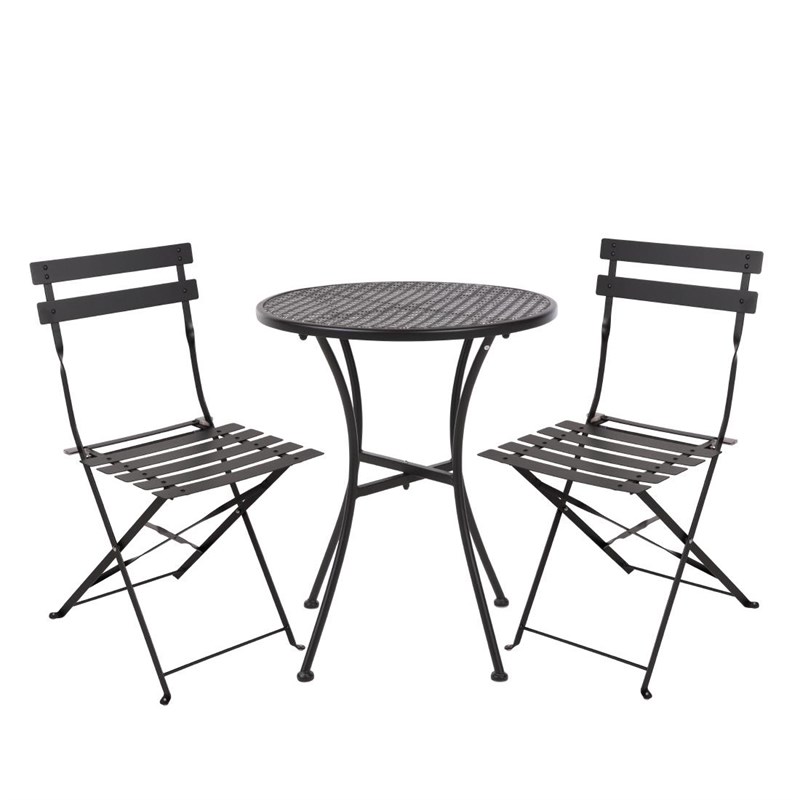 Outdoor Bistro Garnitur Schwarz – Klappbares Stahl Tisch-Set für Café & Gastronomie