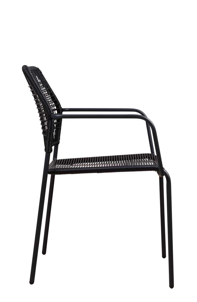 Das pulverbeschichtete Stahlgestell sorgt für hohe Stabilität, während das UV-beständige Kunststoffgeflecht eine lange Lebensdauer garantiert – selbst bei intensiver Sonneneinstrahlung oder wechselnden Wetterbedingungen. Durch seine pflegeleichte und schnell trocknende Oberfläche ist der Stuhl ideal für den täglichen Einsatz in stark frequentierten Außenbereichen.